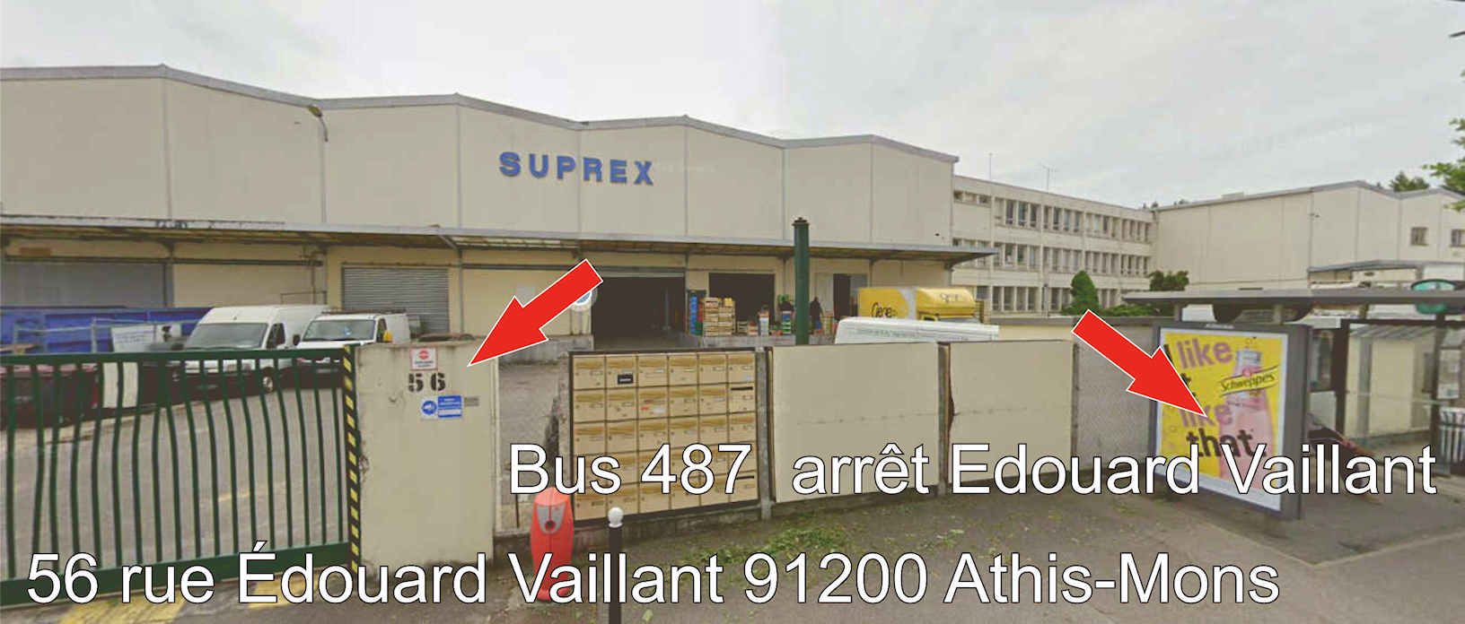 Il faut utiliser le portail qui est le plus proche de l’Arrêt de bus (Arrêt Edouard Vaillant), au 56 rue Edouard Vaillant à Athis-Mons (le n°2 sur le plan)
